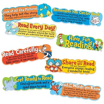 Eureka Back To School Dr Seuss Motivational Reading Bulletin Board And Classroom Decorations 6 5 X 0 1 X 26 8 Pc