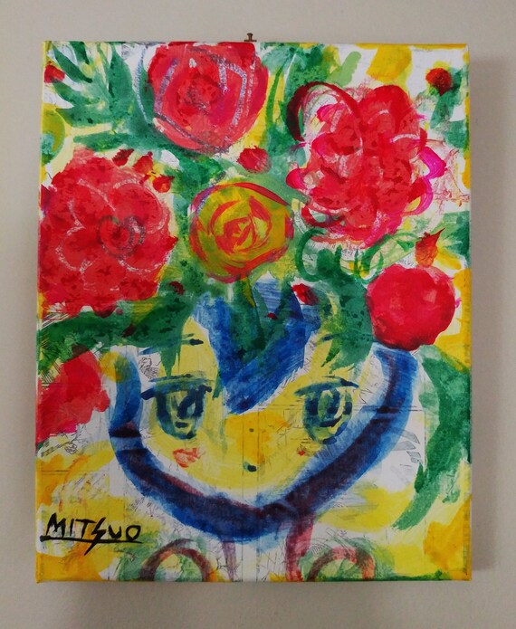 Flower Girl Mixed Media Wall Art Wall Decor Art Gift Colorful Gift For Her Japanese Artist Small Mitsuo